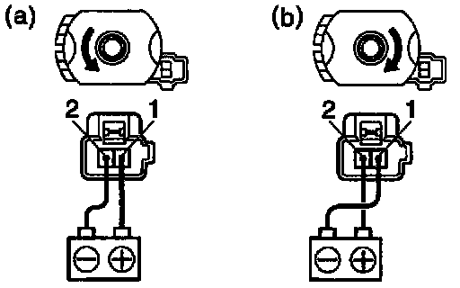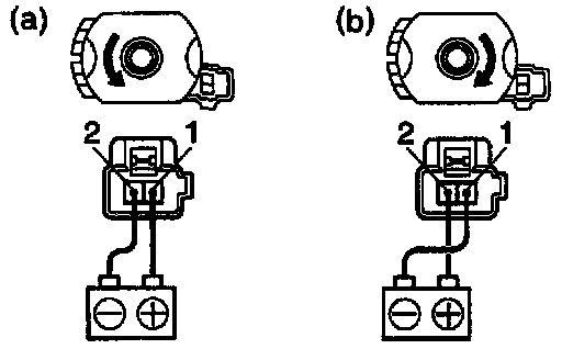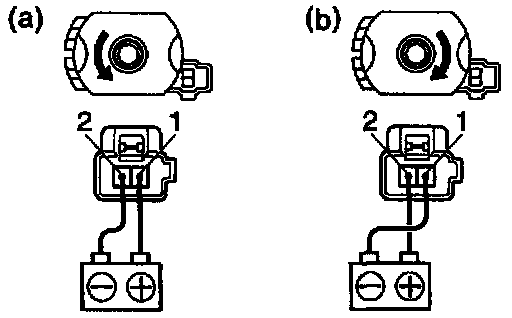 a. Connect the positive (+) lead from the battery to terminal 1 and the negative (-) lead to terminal 2, check that the motor turns counterclockwise.