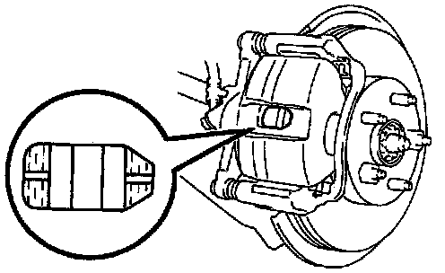 Check the pad thickness through the Caliper inspection hole and replace the pads if they are not within the specification.