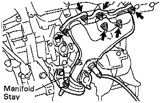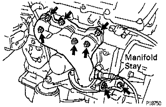 (b) Install the exhaust manifold stay with the bolt and nut. Alternately tighten the bolt and nut.