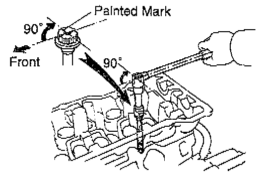 (d) Mark the front of the cylinder head bolt head with paint.