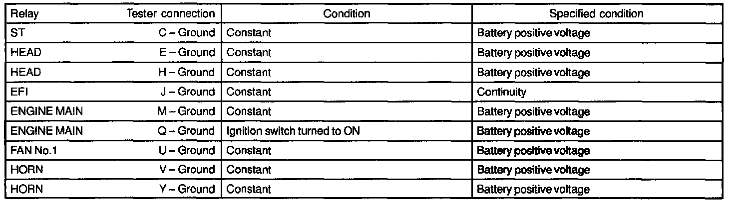 Remove the relay from the junction block and inspect the connector on junction block side, as shown.