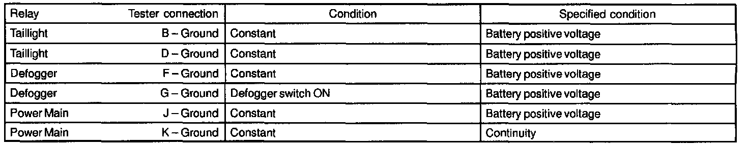 Remove the relay from the junction block and inspect inspect the connector on junction block side, as shown.