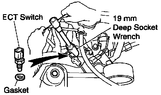 (b) Using a 19 mm deep socket wrench, remove the ECT sensor and gasket.