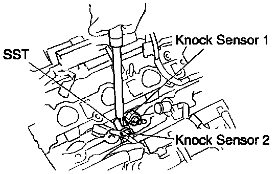 (b) Using SST, remove the knock sensor. SST 09817-16011