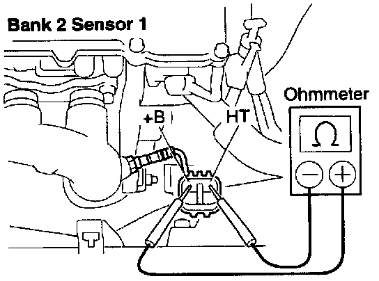 2. Inspect heater resistance of heated oxygen sensor.