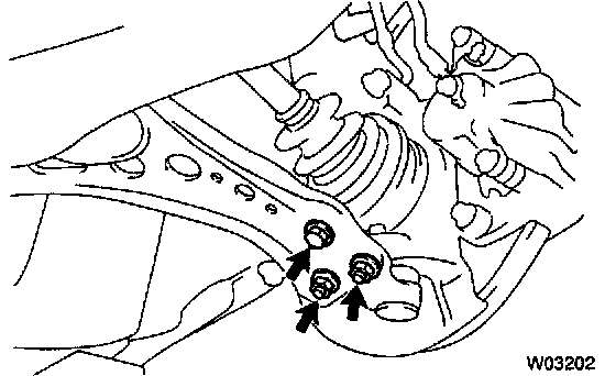 2. Disconnect the lower suspension arm from the lower ball joint after removing the two nuts and bolt.