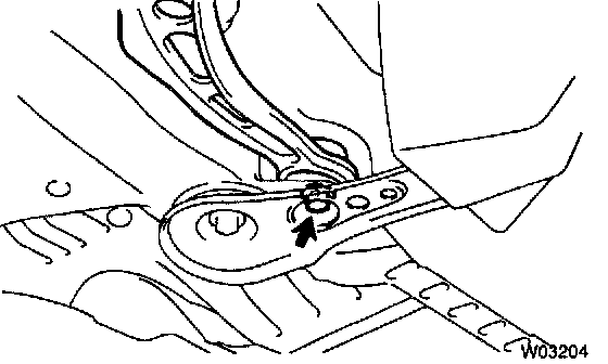 b. Remove the bolt and nut on the rear side of the lower suspension arm.