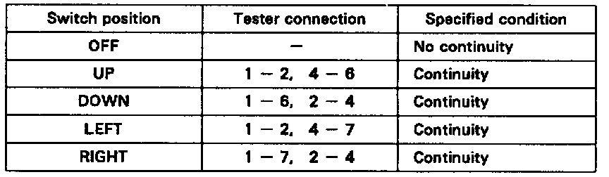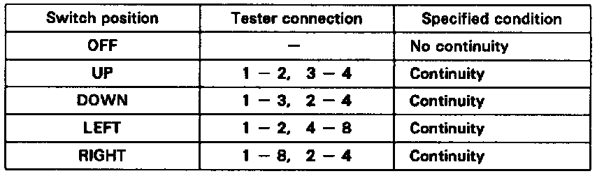If continuity is not as specified, replace the switch.