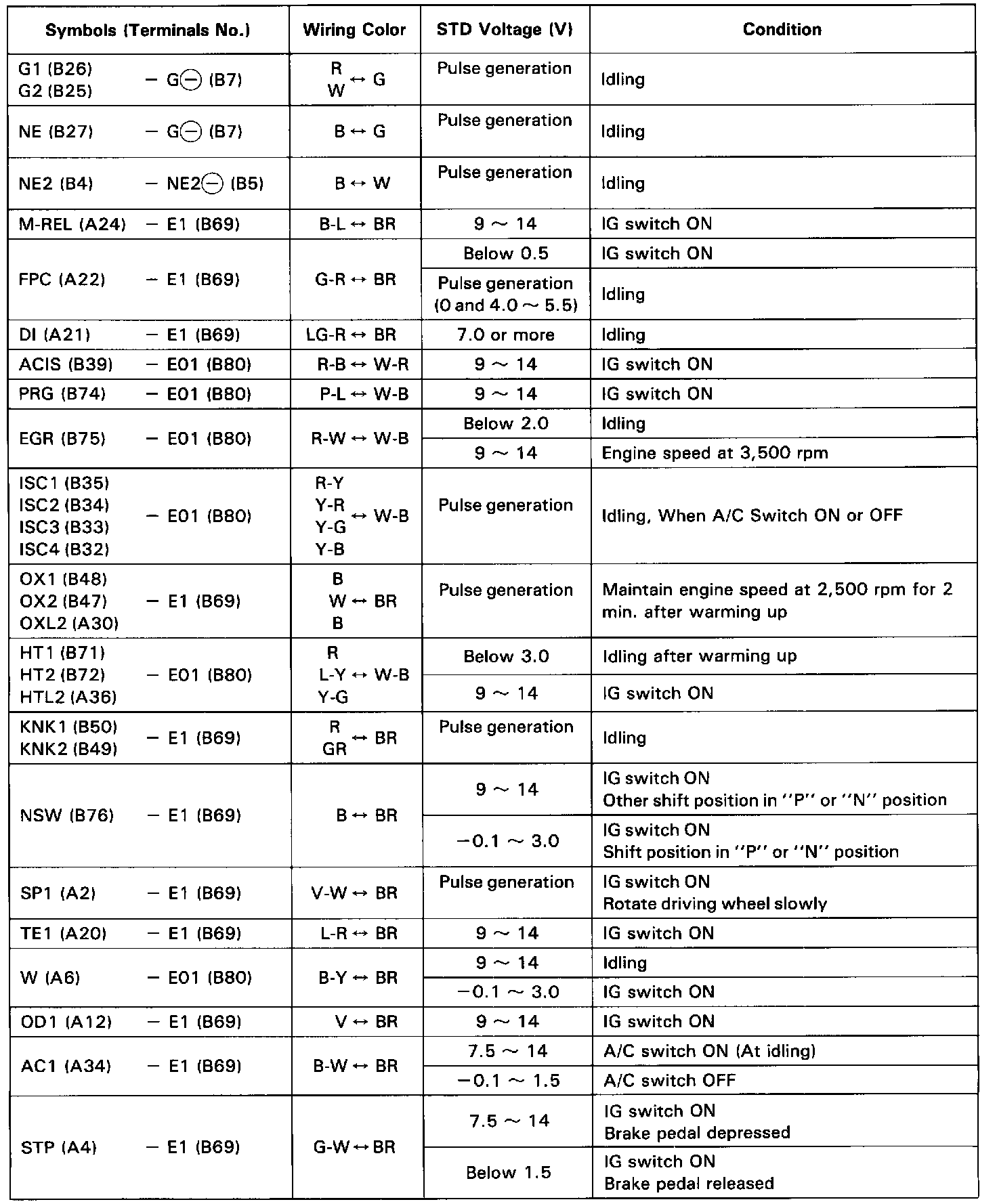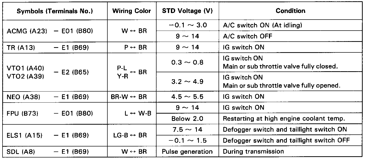 Standard Value of ECM Terminals