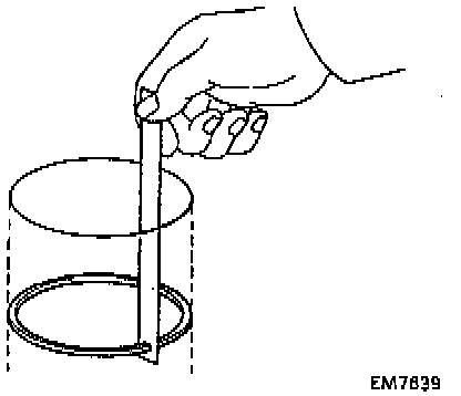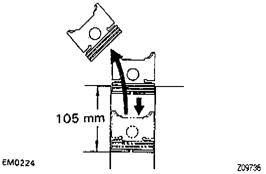 - Using a piston, push the piston ring a little beyond the bottom of the ring travel, 105 mm (4.1300 inch) from the top of the cylinder block.