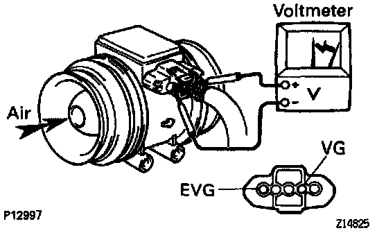 - Using a voltmeter, connect the positive (+) tester probe to terminal VG. and negative (-) tester probe to terminal EVG.
