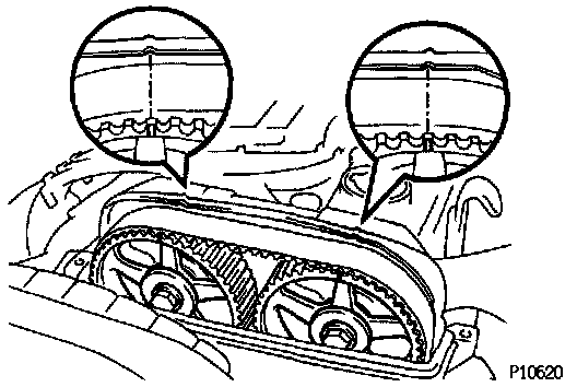 - If not, turn the crankshaft 1 revolution (3600) and align the mark as above.