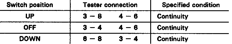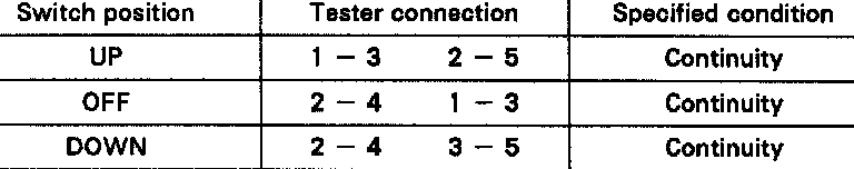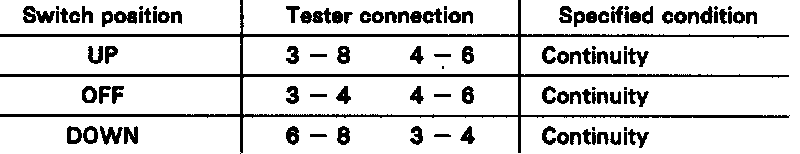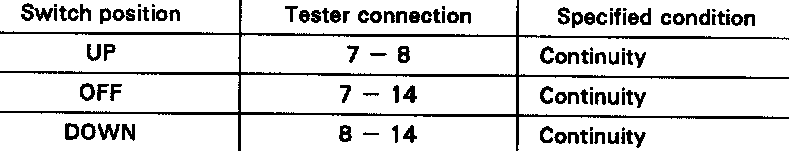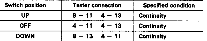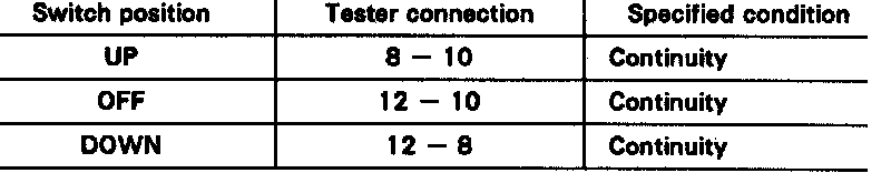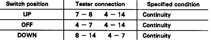 If continuity is not as specified, replace the master switch.