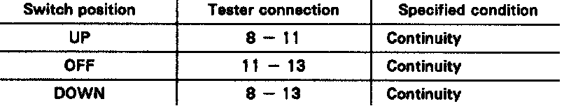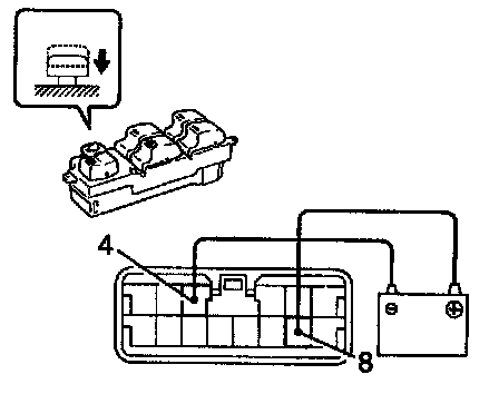 HINT: The circuit breaker opens some 4 - 40 seconds after the window stops going down, so that check must be made before the circuit breaker operates. If the operation is as specified, replace the master switch.