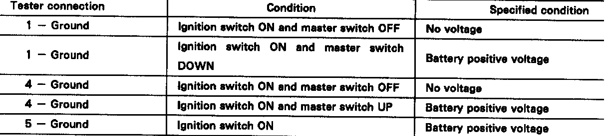 If operation is not as specified, replace the master switch.