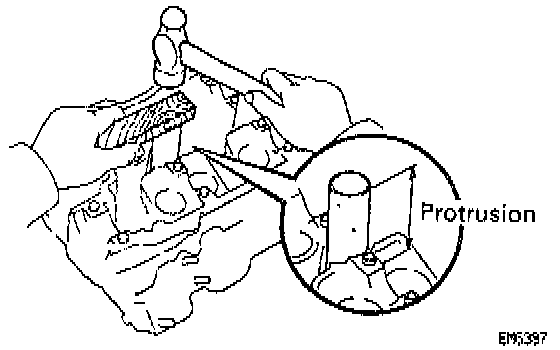 (b) Using a wooden block and hammer, tap in a new spark tube until there is 48.400-49.600 mm (1.906-1.953 inch) protruding from the camshaft bearing cap installation surface of the cylinder head.