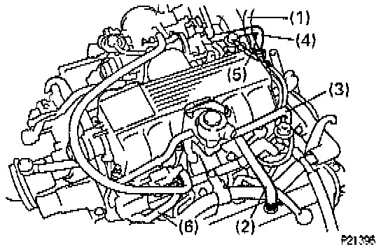 - Vacuum hose from VSV for fuel pressure control (5) to fuel pressure regulator.