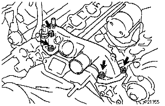(d) Install the four nuts holding the water bypass joint to the cylinder heads. Alternately tighten the nuts tighten to 18 Nm (185 kg.cm, 13 ft.lb).