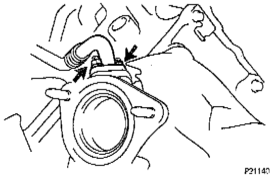 (a) Remove any old packing (FIPG) material and be careful not to drop any oil on the contact surfaces of the water inlet housing and water pump.