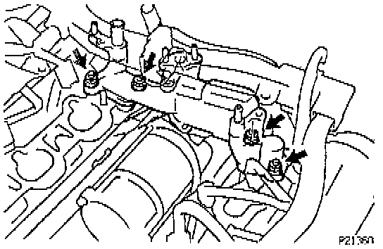 - 2 engine wire connectors to connector bracket on LH delivery pipe (2).
