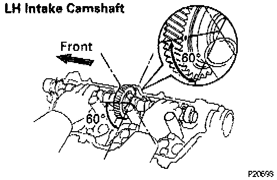 (b) Place the intake camshaft at 60° angle of the timing mark (1 dot mark) on the cylinder head.