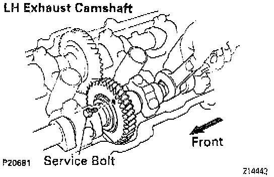 (l) Bring the service bolt installed in the driven sub-gear upward by turning the hexagon wrench head portion of the camshaft with a wrench.