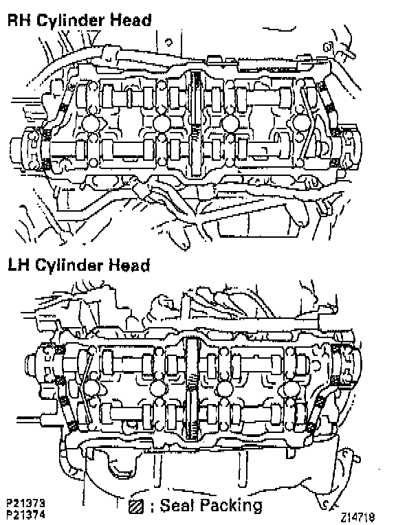 (b) Apply seal packing to the cylinder heads as shown in the illustration.