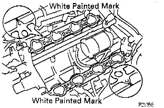 (a) Place two new gaskets on the cylinder heads with white painted mark facing upward.