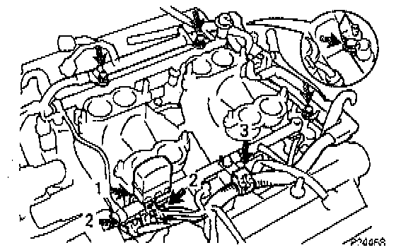 - Engine wire clamp to wire bracket on LH delivery pipe (3).