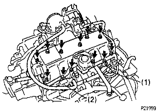 (c) Install and uniformly tighten the six bolts and four nuts in several passes to 18 Nm (185 kg.cm, 13 ft.lb).
