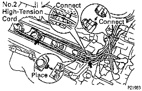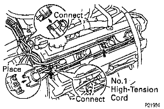 (a) Connect the high-tension cords to the spark plugs, distributor caps and No.2 ignition coil.