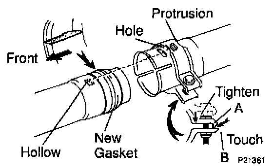 - Fit together the clamp protrusion and pipe hollow, and tighten the clamp bolt until A and B of the clamp are just touching.