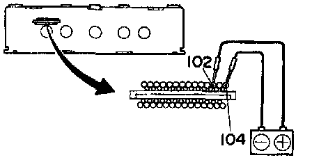 b. Connect the positive (+) lead from the battery terminal 102 and negative (-) terminal lead to 104 and then check that the illumination lights up.