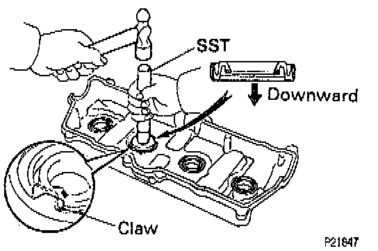 3. Using handle SST No. 09950-70010, adapter SST No. 09952-06010 and replacer discs 24 and 48 from replacer set SST No. 09950-60010, or equivalent, and a suitable hammer, tap in a new gasket until its surface is flush with the upper edge of the cylinder head cover.