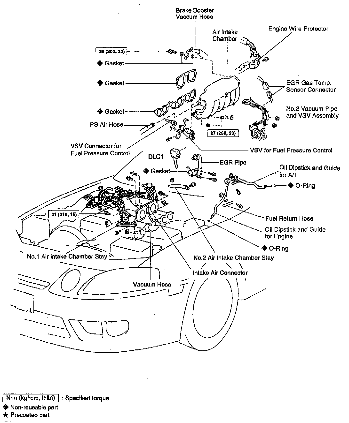 (2) Vacuum hose (from No. 2 vacuum pipe) from a intake chamber