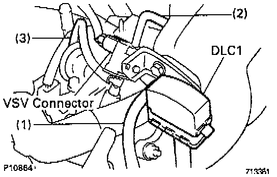 (d) Remove the bolt, DLC1 bracket and VSV assembly.