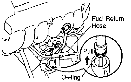 (a) Disconnect the fuel return hose from the clamp of the dipstick guide.