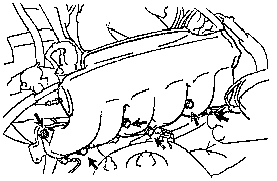 (4) Brake booster vacuum hose from air intake chamber Remove the union bolt and 2 gaskets, and disconnect the vacuum hose.