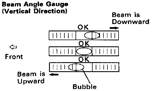HINT: If the gauge bubble is outside the acceptable range, check that the vehicle is parked on a level spot. Readjust the headlight aim after parking the vehicle on a level spot.