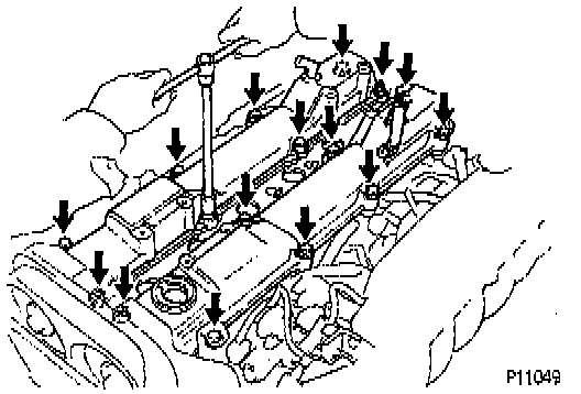 (c) Check only the valves indicated in the illustration, measure the valve clearances described in step (a).