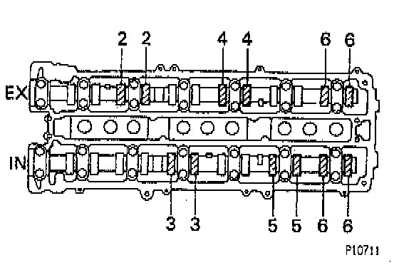 - Record the valve clearance measurements of those that are out of specification. They will be used later to determine the required replacement adjusting shim.