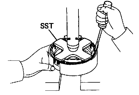 a. Place SST on the spring retainer, and compress the return spring with a shop press.