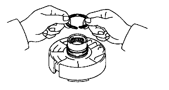 b. Install the 2 oil seal rings to the O/D support groove, then snug them down by squeezing their ends together.