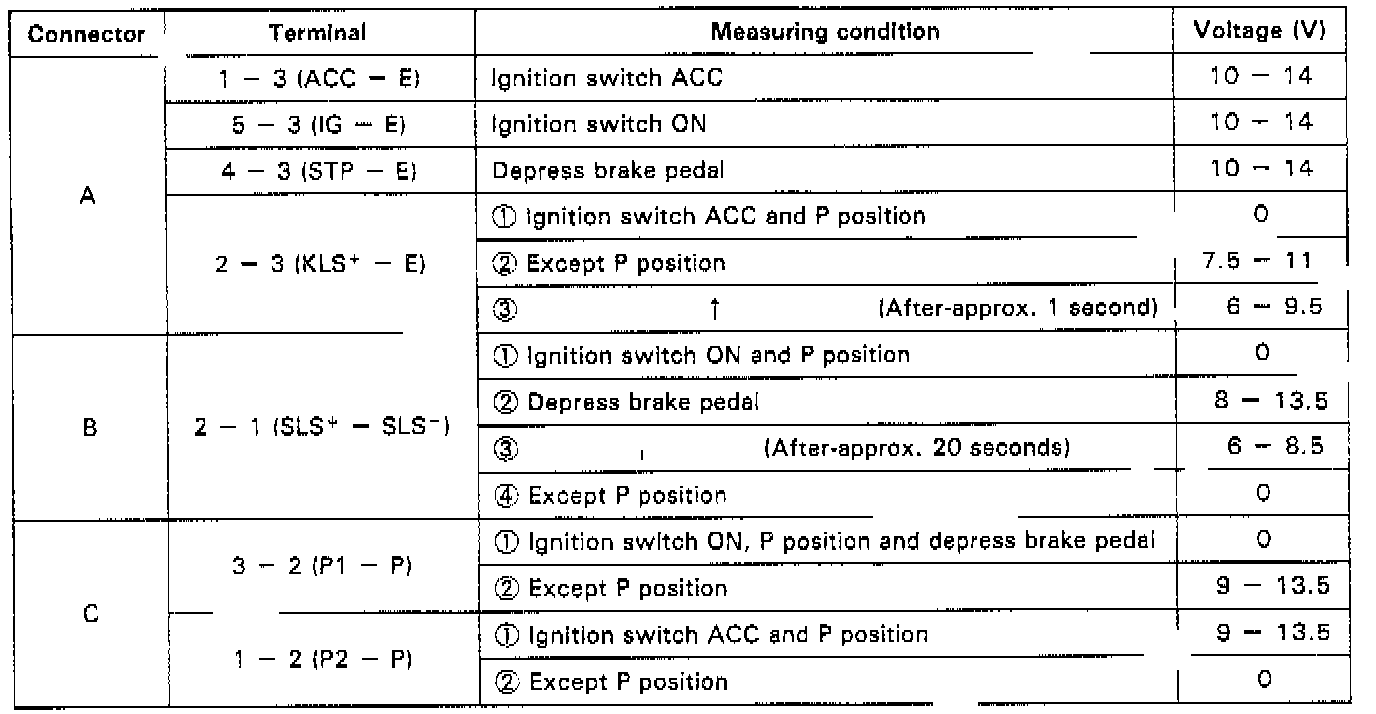 Inspect shift lock control Electronic Control Unit
