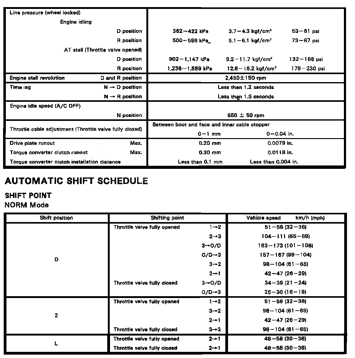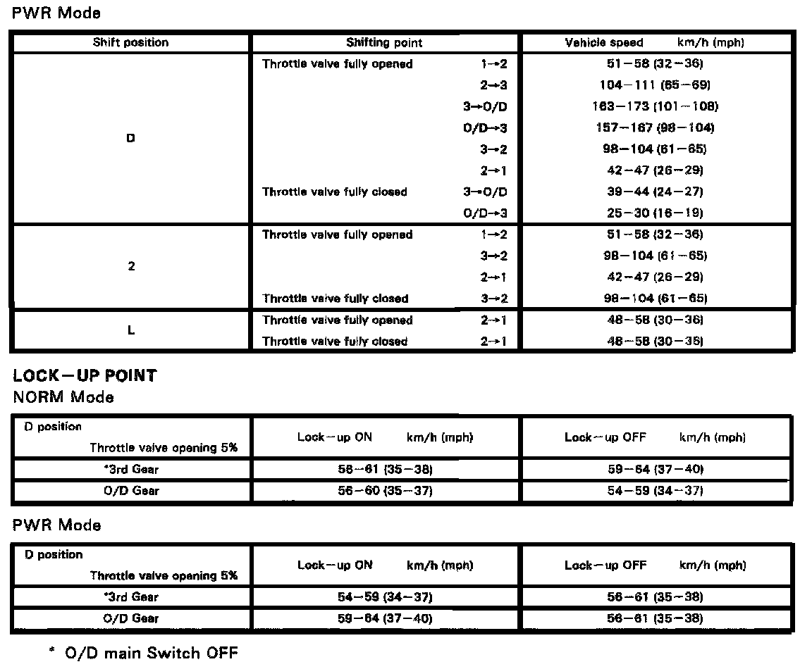 A340E 4-spd A/T, Shift Schedule / Lock-Up Point: