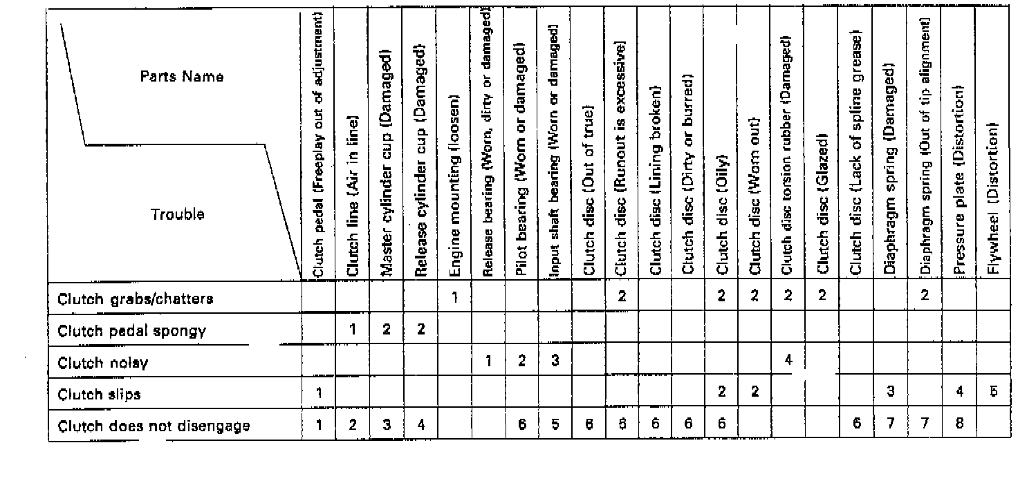 Use the table to help you find the cause of the problem. The numbers indicate the priority of the likely cause of the problem. Check each part in order and replace as necessary.