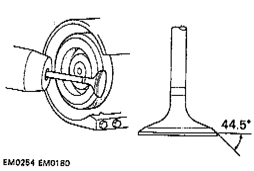 Valve face angle: 44.5°.