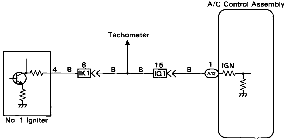 CIRCUIT DESCRIPTIONThe air conditioning control assembly monitors the engine speed through signals sent from the igniter. The air conditioning control assembly uses these signals and compressor speed signals to detect the compressor lock condition.
