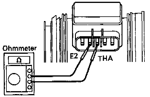 Using an ohmmeter, measure the resistance between terminals THA and E2.