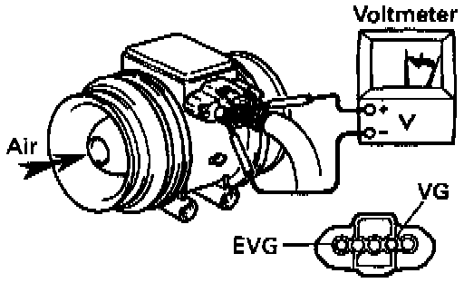 (c) Using a voltmeter, connect the positive (+) tester probe to terminal VG and negative (-) tester probe to terminal EVG.